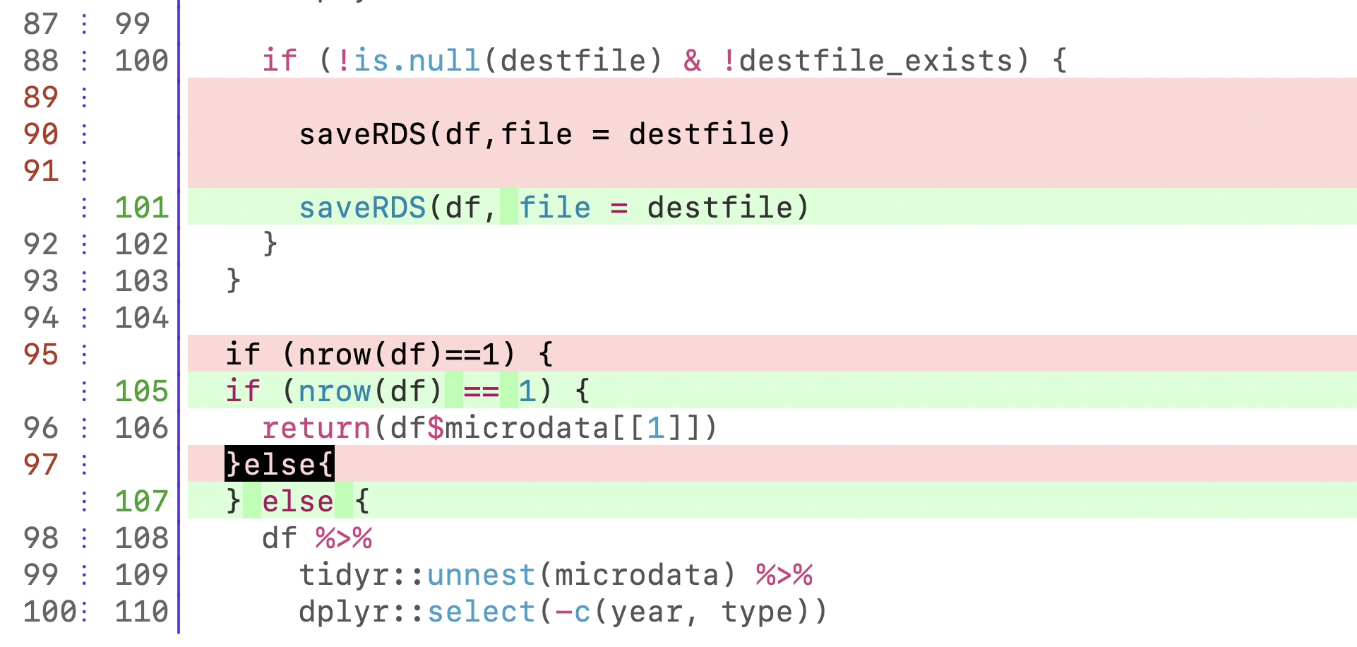 Regarding the function names, I would try not to make major modifications so as not to disrupt the workflow of our current users (approximately 30 thousand people use the package and I would like to avoid causing them inconvenience if it’s not something fundamental for the package’s functionality). However, I agree that it’s a good practice, and I’ll keep it in mind when adding new functions.