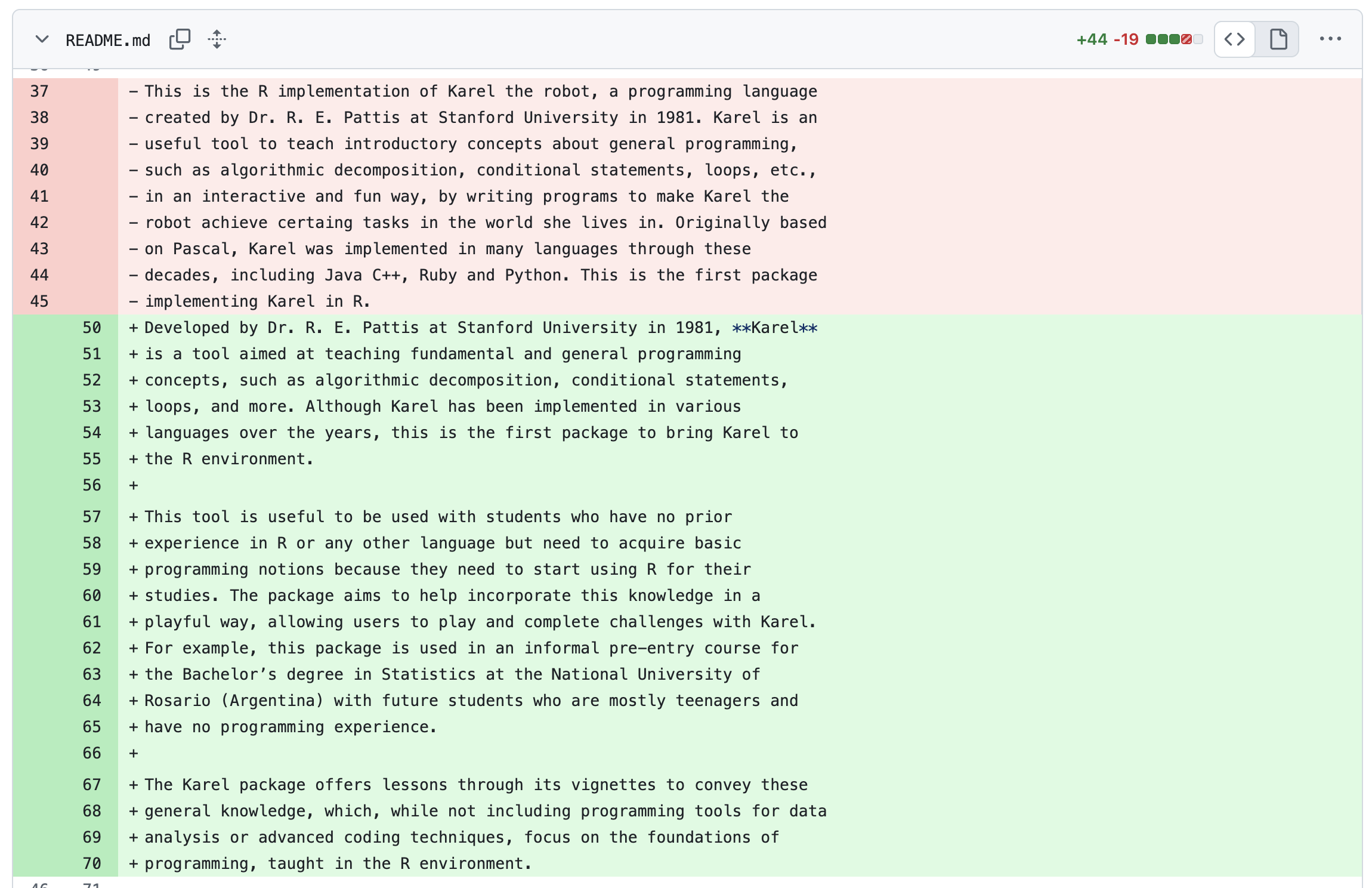 git checkout -b antes 707cd24c{karel}: Learning programming with Karel the robot